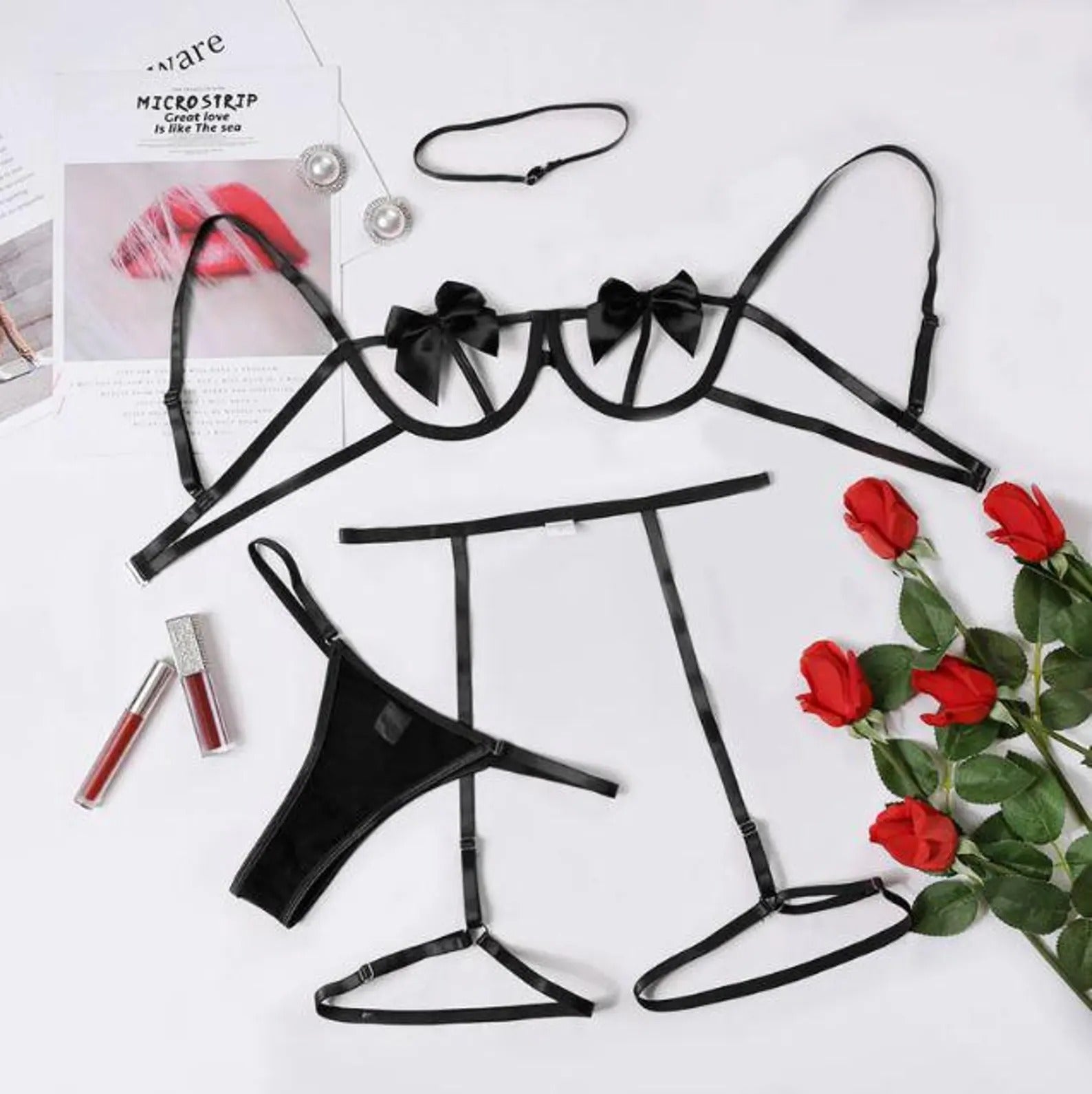 Upgrade your lingerie collection with this elegant black strappy bra & panty set featuring delicate bow details and an adjustable harness-style fit. Minimal, modern, and perfect for bridal wear, anniversaries, or a special gift.